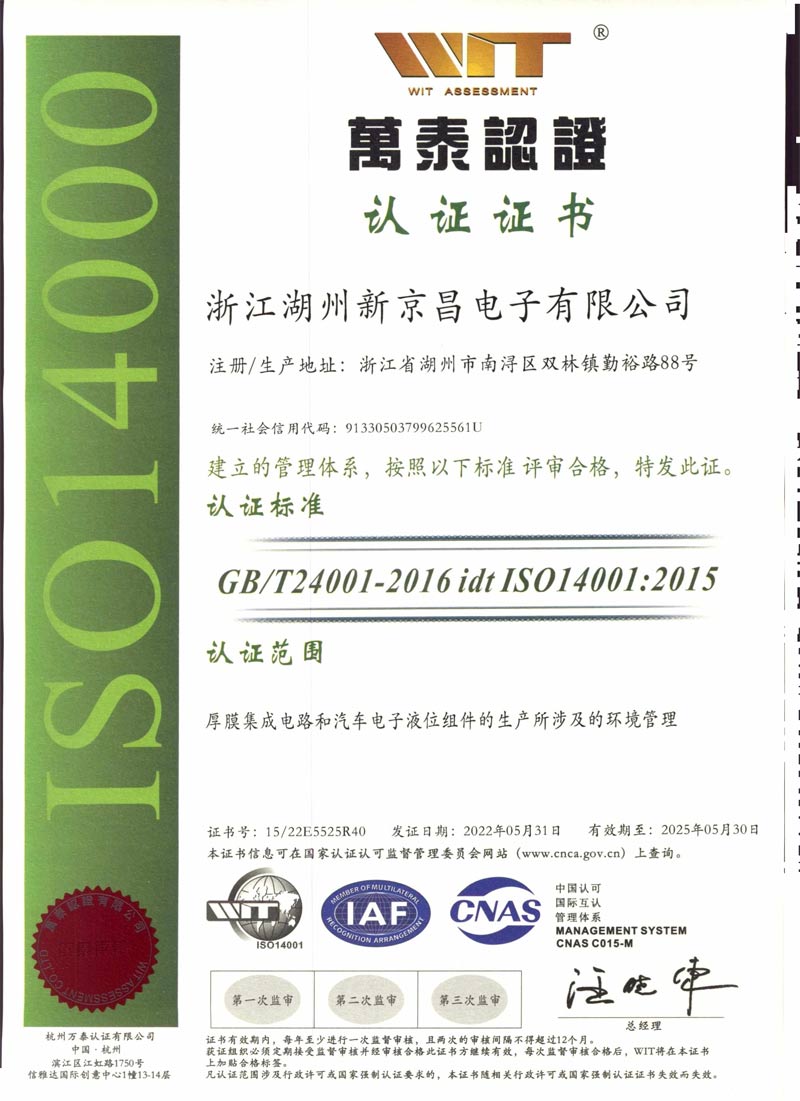 ISO14001證書